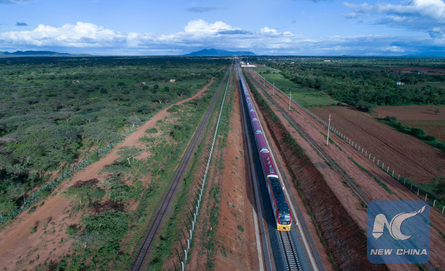 A train runs on Kenya's Mombasa-Nairobi Standard Gauge Railway. (Xinhua/Chen Cheng)