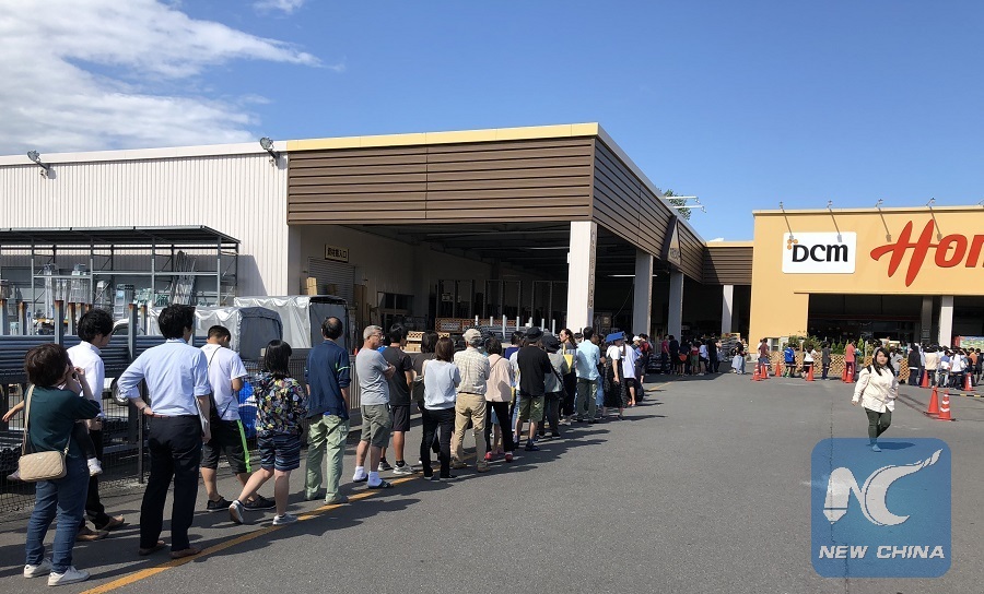 People queue in front of a supermarket after an earthquake in Date, Hokkaido, Japan, on Sept. 6, 2018. (Xinhua/Deng Min)