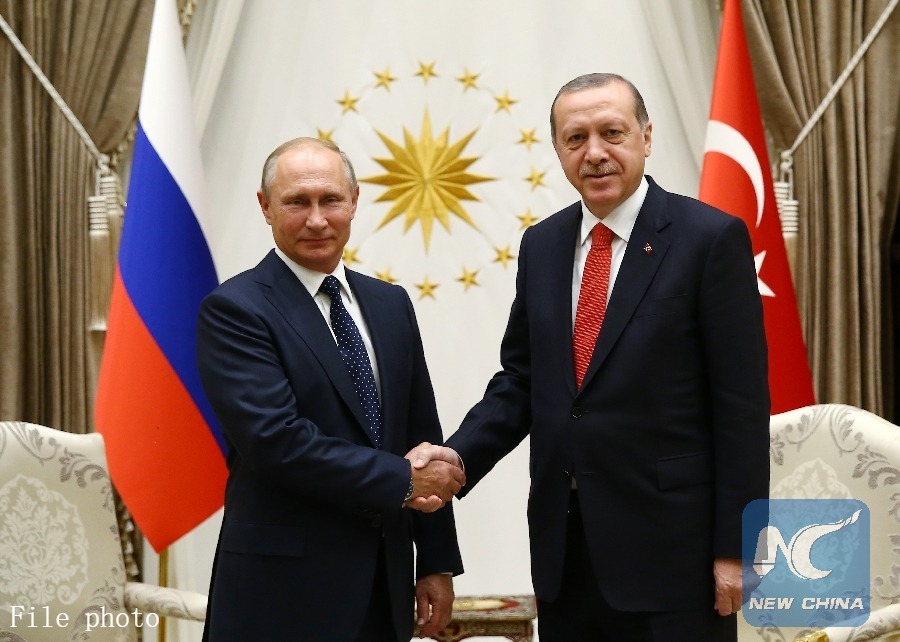 Turkish President Recep Tayyip Erdogan (R) meets with visiting Russian President Vladimir Putin in Ankara Sept. 28, 2017. (Xinhua/Turkish Presidential Office)