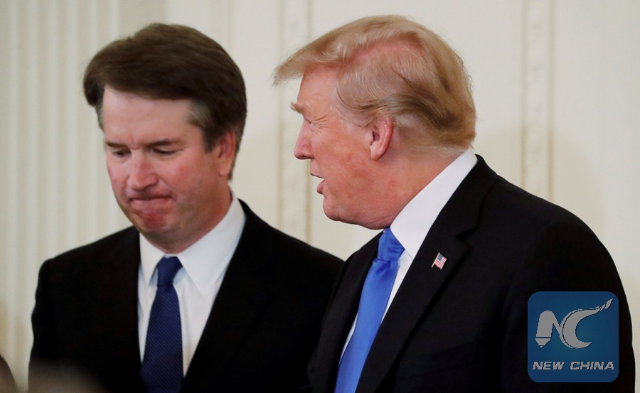 File Photo: U.S. President Donald Trump talks with his nominee for the U.S. Supreme Court Brett Kavanaugh at his nomination announcement in the East Room of the White House in Washington, U.S., July 9, 2018. (Xinhua/REUTERS)