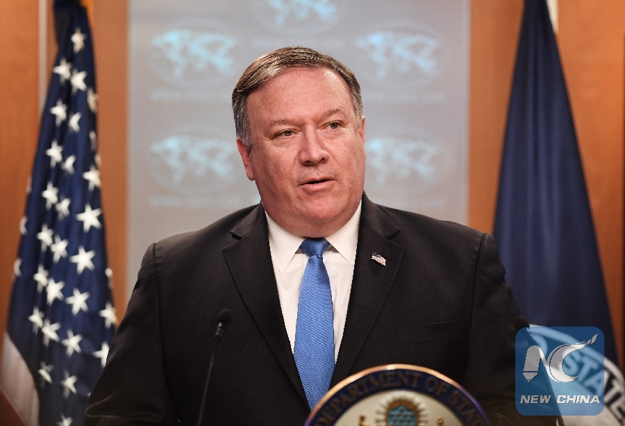 File Photo: U.S. Secretary of State Mike Pompeo speaks during a press briefing in Washington D.C., the United States, Aug. 16, 2018. (Xinhua/Liu Jie)
