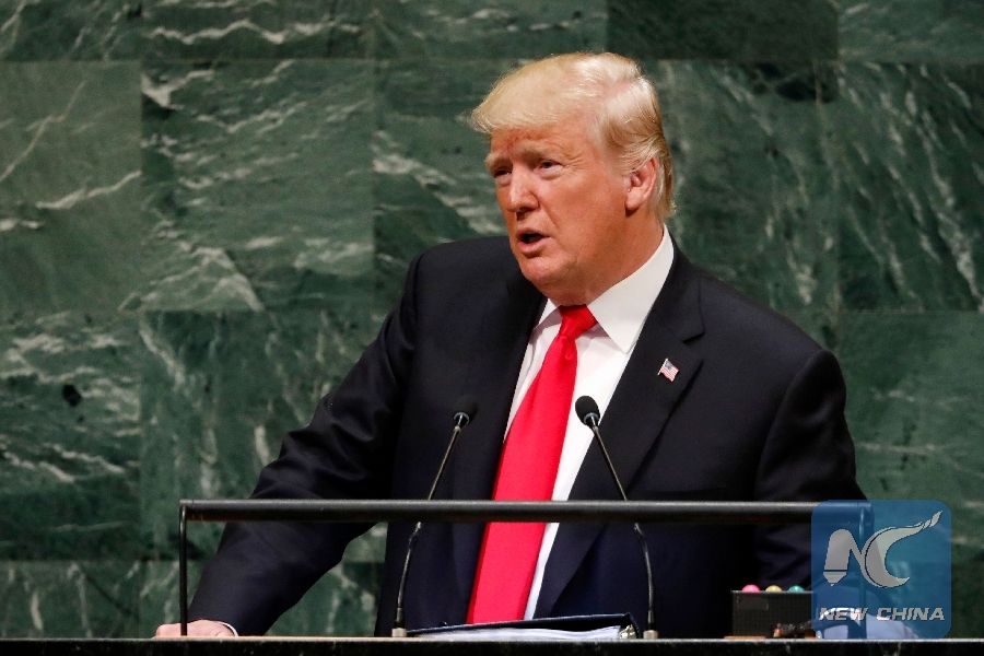 U.S. President Donald Trump addresses the General Debate of the 73rd session of the United Nations General Assembly at the UN Headquarters in New York, on Sept. 25, 2018. (Xinhua/Li Muzi)