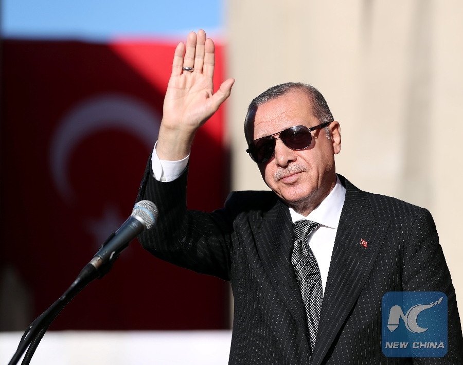 ANKARA, Oct. 1 (Xinhua) -- Turkish President Recep Tayyip Erdogan signaled on Monday a potentially new military offensive in neighboring Syria against a Kurdish faction, aiming to secure control of the northern region east of the Euphrates River.