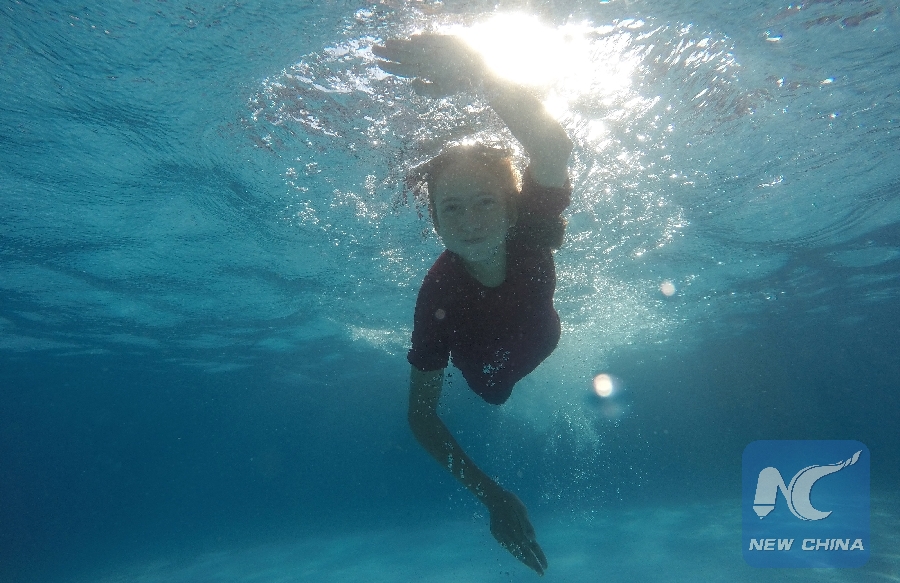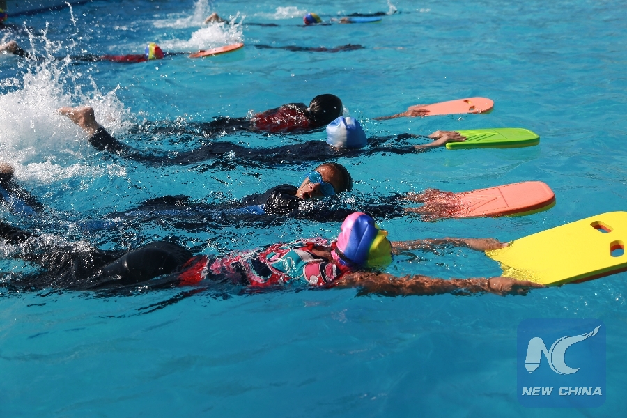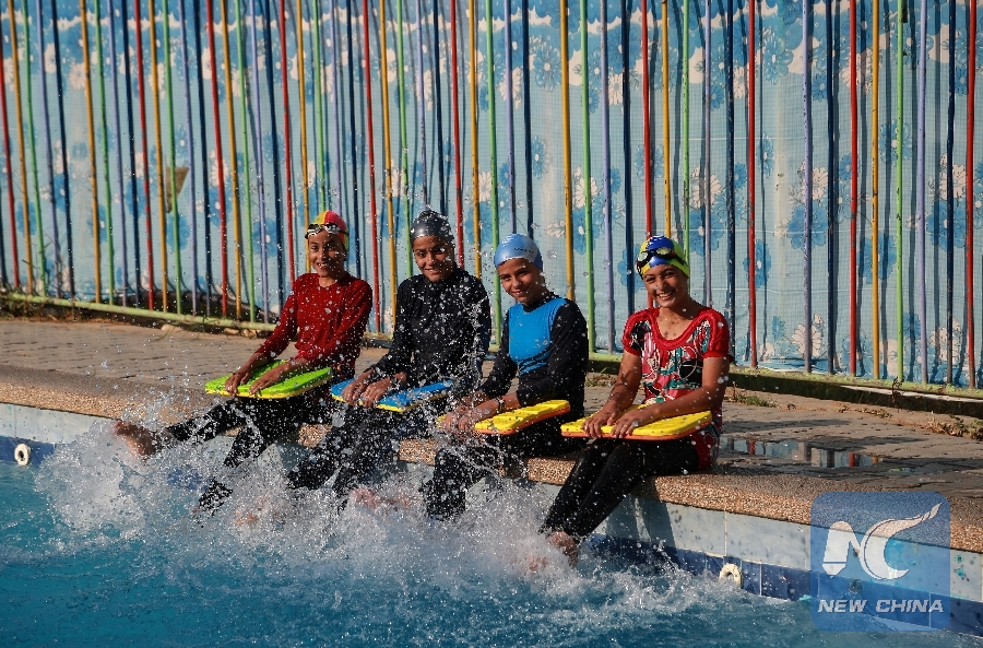 GAZA, Oct. 10 (Xinhua) -- Palestinian girl Fatima Abu Shadak from the Gaza Strip had the opportunity to develop her swimming skills as part of an initiative focusing on the victims of the recent Israeli offensive on the Gaza Strip in the summer of 2014.