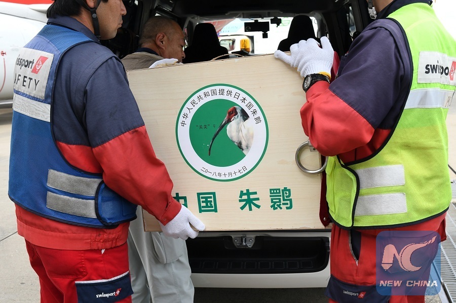 TOKYO, Oct. 17 (Xinhua) -- A pair of crested ibises from China arrived in Japan on Wednesday as a symbol of friendship between the two countries.