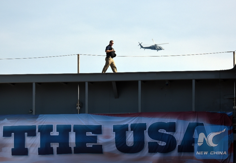 File Photo: A soldier patrols on USS Gerald R. Ford before its commissioning ceremony at Naval Station Norfolk, Virginia, the United States, on July 22, 2017. (Xinhua/Yin Bogu)