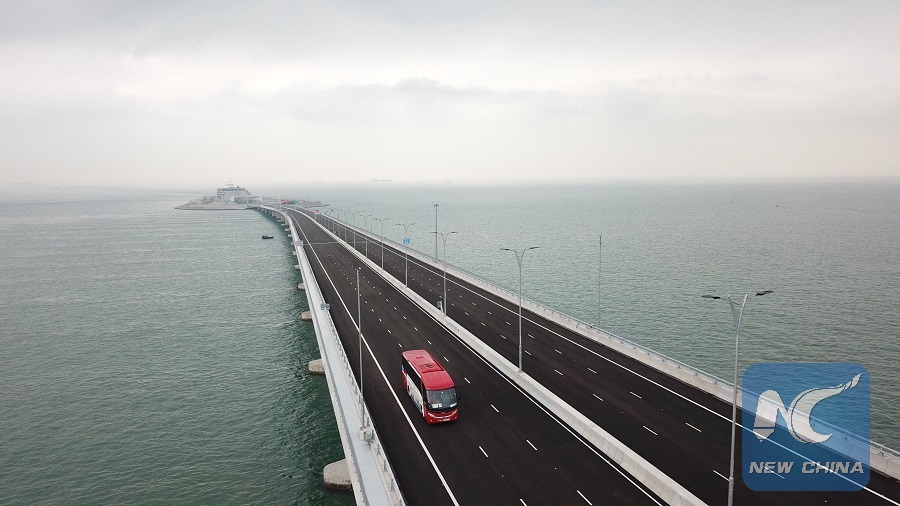 HONG KONG, Oct. 25 (Xinhua) -- After nine years of construction, the world's longest bridge, the Hong Kong-Zhuhai-Macao Bridge, has opened to traffic, giving a strong boost to the development of the Guangdong-Hong Kong-Macao Greater Bay Area.