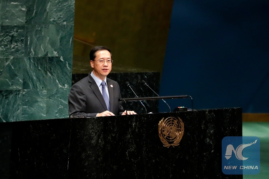 Ma Zhaoxu, China's permanent representative to the United Nations, addresses a UN General Assembly meeting at the UN headquarters in New York, Oct. 31, 2018. (Xinhua/Li Muzi)