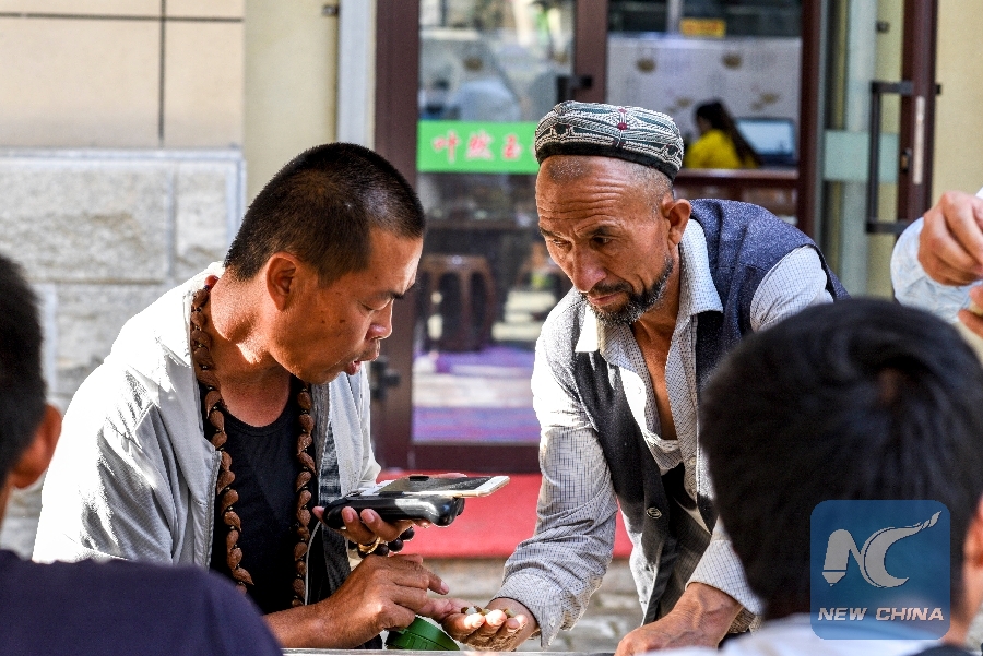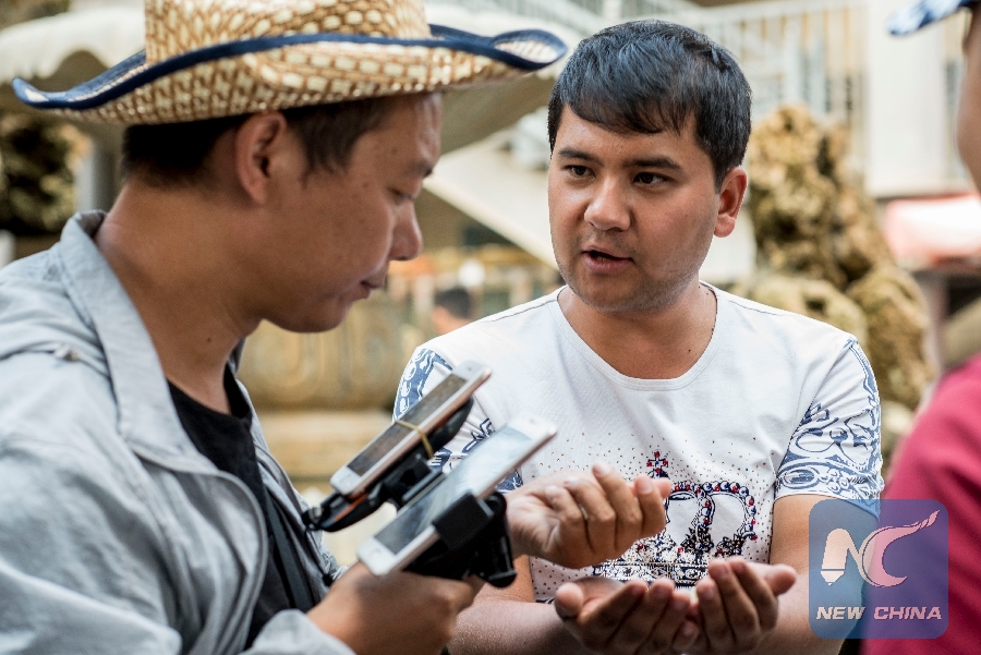 "Thanks to him, the business is good every day," said Tursunjan Mamataxim, a jade seller who just made a deal worth 450 yuan (about 65 U.S. dollars) with the help of Pu's live show.