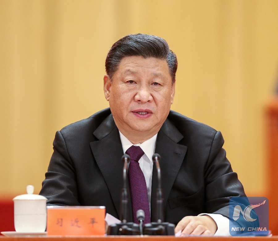Chinese President Xi Jinping, also general secretary of the Communist Party of China (CPC) Central Committee and chairman of the Central Military Commission, addresses a grand gathering to celebrate the 40th anniversary of China's reform and opening-up at the Great Hall of the People in Beijing, capital of China, on Dec. 18, 2018. (Xinhua/Yao Dawei)