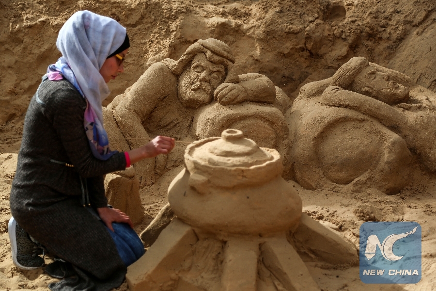 Feature: Young woman in Gaza uses sand sculpture to highlight Palestinian cause