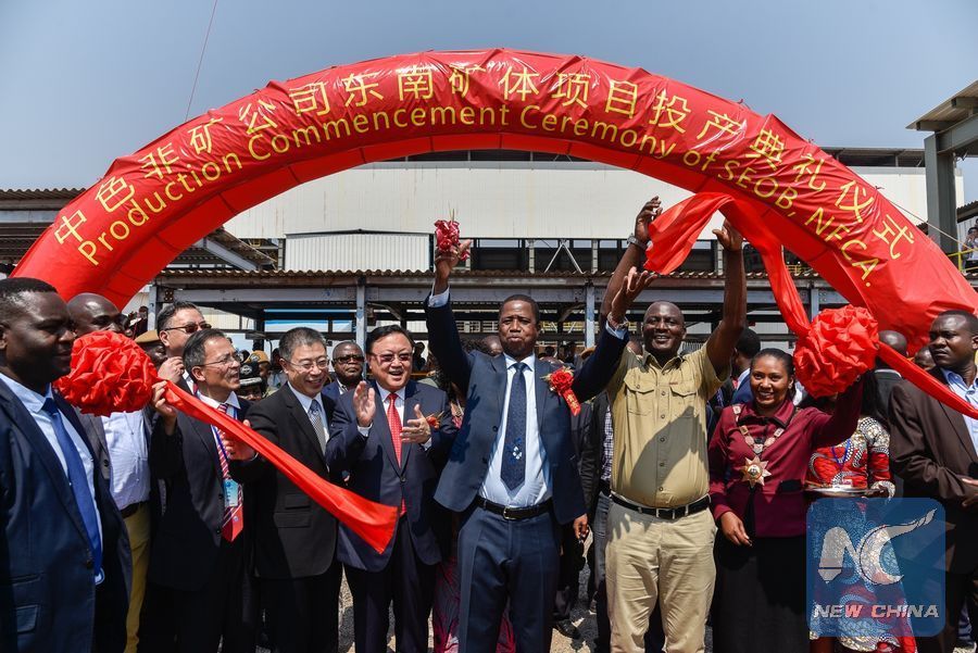 File photo shows production commencement ceremony of the South East Ore Body (SEOB), Nonferrous China Africa (NFCA) in Zambia's Chambishi town on Aug. 22, 2018. (Xinhua/Vincent Chen)