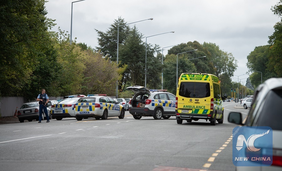 At least 49 people were killed and 48 injured in multiple shootings in two mosques in New Zealand's city of Christchurch on March 15, 2019. (Xinhua/Zhu Qiping)