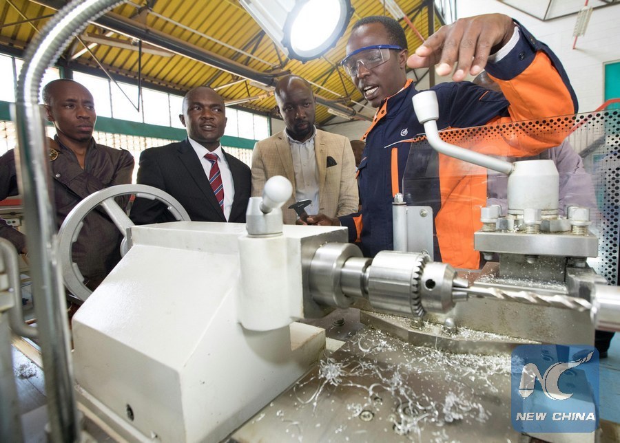 File photo shows senior Kenyan policymakers, lawmakers, scholars and media representatives visit the AVIC technical and vocational training program at Kenya Technical Trainers College in Nairobi, Kenya, on Oct. 30, 2018.(Xinhua/Zhang Yu)