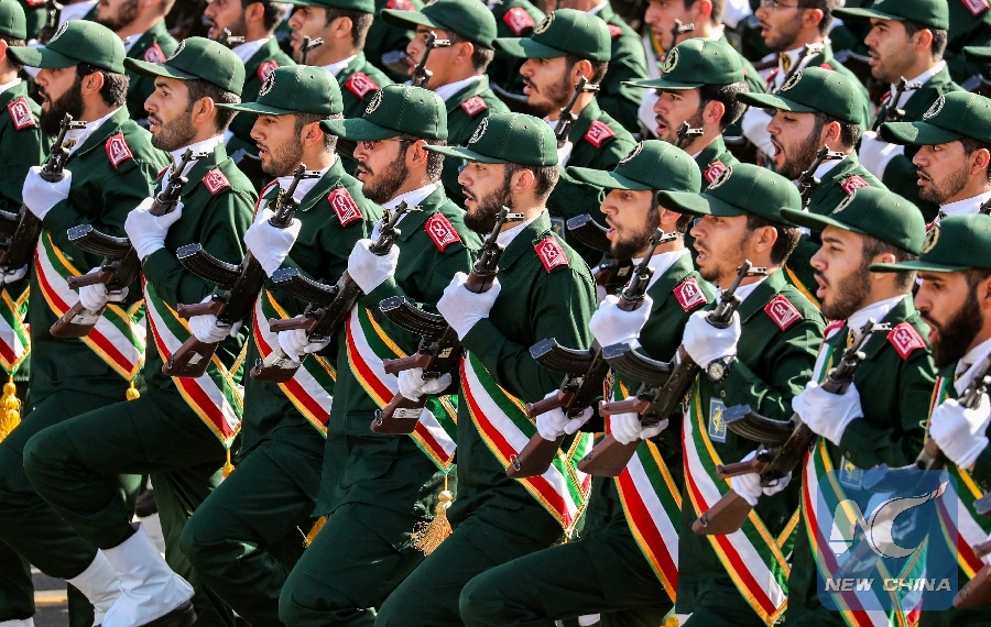 In this file photo taken on Sept. 22, 2018, members of Iran's IRGC march during the annual military parade marking the anniversary of the outbreak of the 1980-1988 war with Iraq, in the capital Tehran. (Xinhua/AFP)