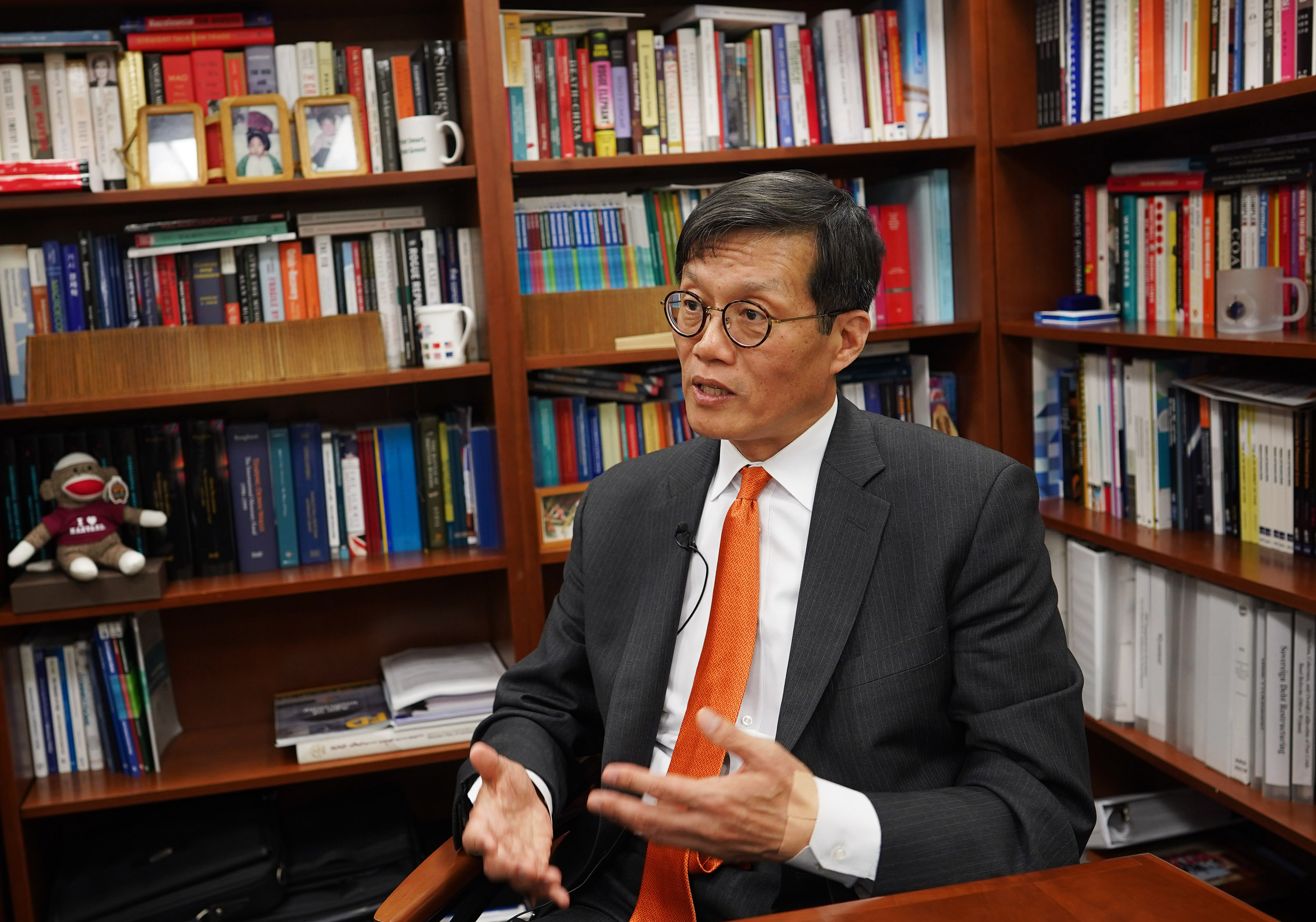 Changyong Rhee, director of the IMF Asia and Pacific Department, speaks during an interview in Washington D.C., the United States, on April 2, 2019. (Xinhua/Liu Jie)