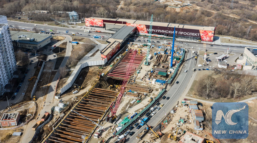 MOSCOW, April 16 (Xinhua) -- Chinese engineers and workers are busy tunneling in southwest Moscow using domestic equipment and technology for a new metro line of the city.