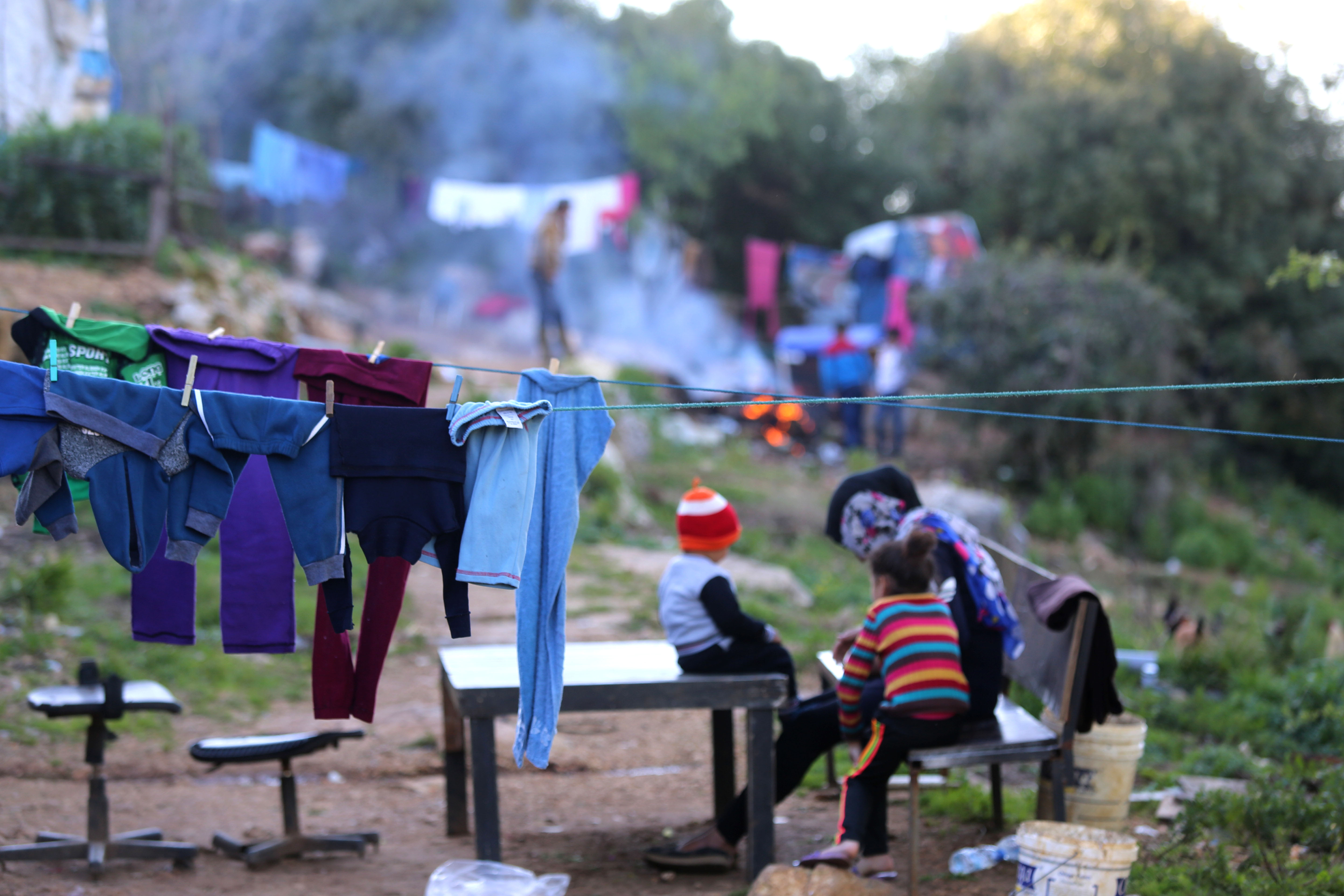 Kids play at Ketermaya's camp in an olive-tree field on the hillside inside a valley in the mountain area of Ketermaya, southeast of Beirut, Lebanon, March 8, 2019. (Xinhua/Bilal Jawich)