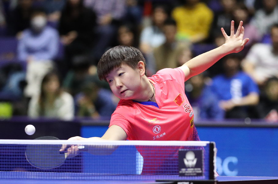 Sun Yingsha of China competes during the women's singles final against her compatriot Liu Shiwen at ITTF World Tour Platinum Japan Open in Sapporo, Japan, on June 16, 2019. Sun Yingsha won 4-3 and claimed the title. (Xinhua/Du Xiaoyi)