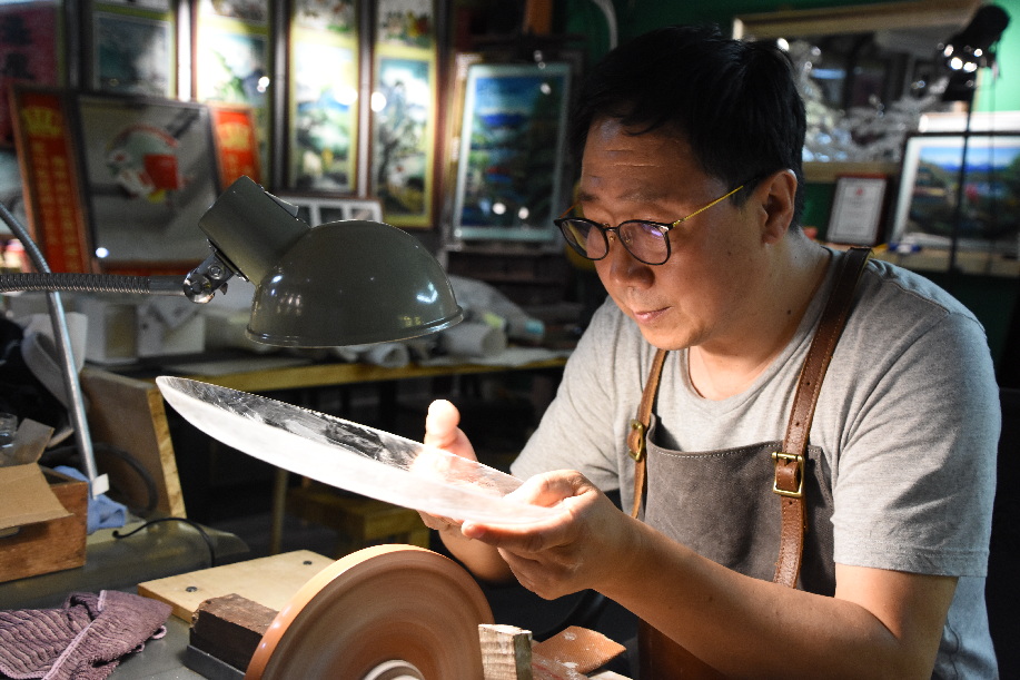 The edge of the ground glass can be as sharp as the blade, and his hands were often injured. When this happened, Zhang would just grab a band-aid and continue to work.