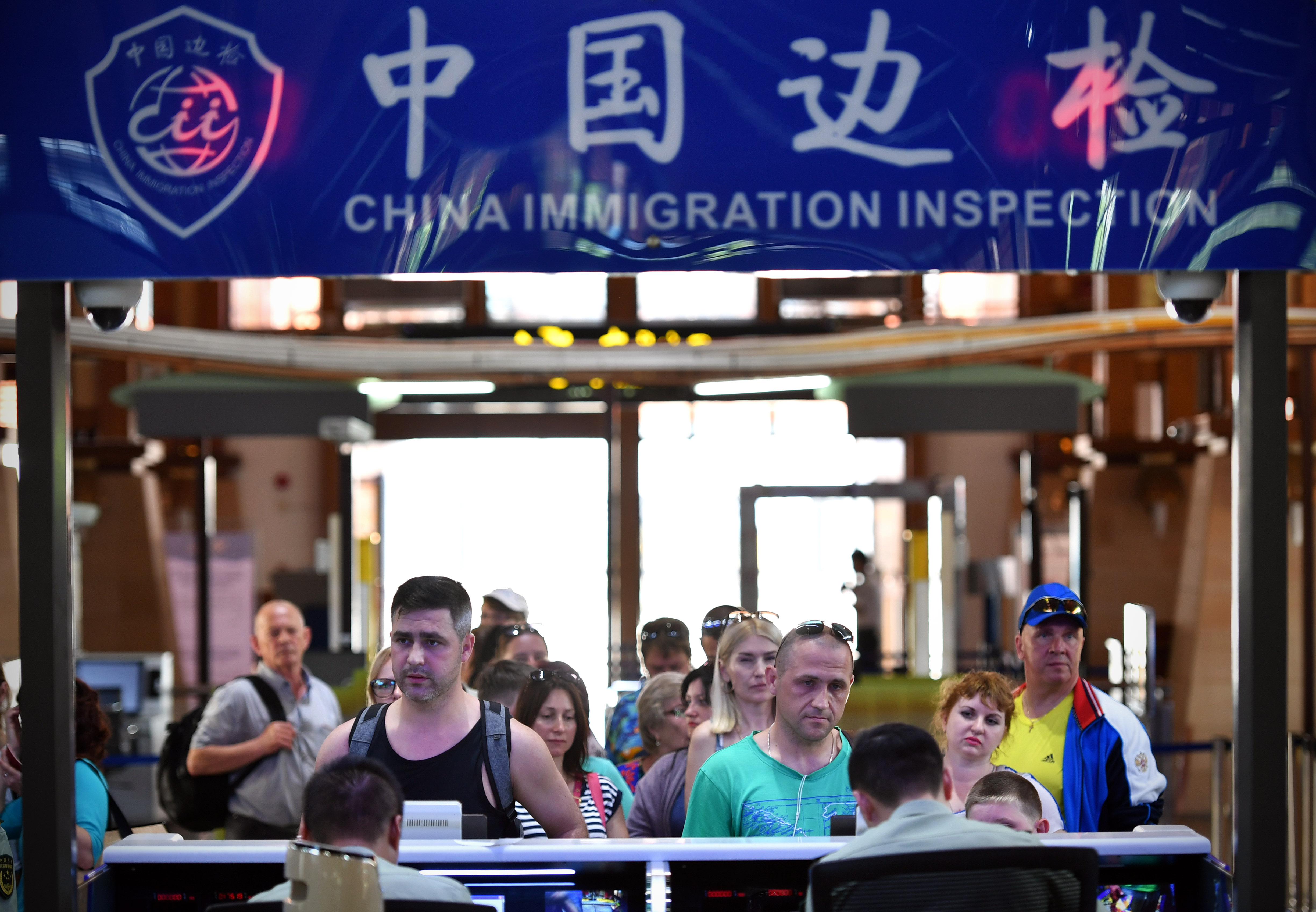 Russian tourists arrive at an immigration inspection checkpoint at Fenghuang International Airport in Sanya, south China's Hainan Province, June 1, 2018. (Xinhua)