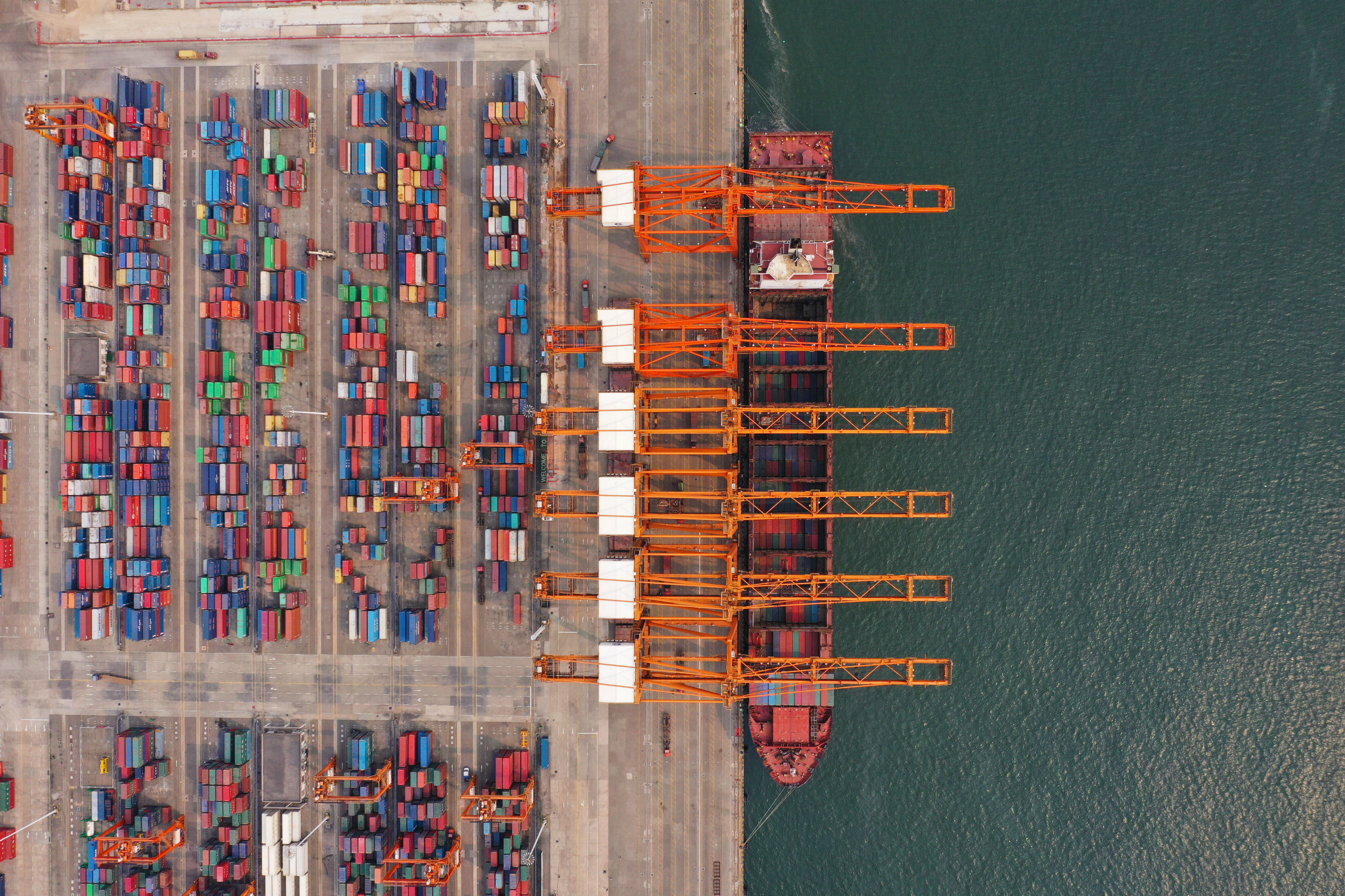 Aerial photo taken on April 11, 2019 shows a container wharf at Qinzhou port in south China's Guangxi Zhuang Autonomous Region. (Xinhua/Cao Yiming)