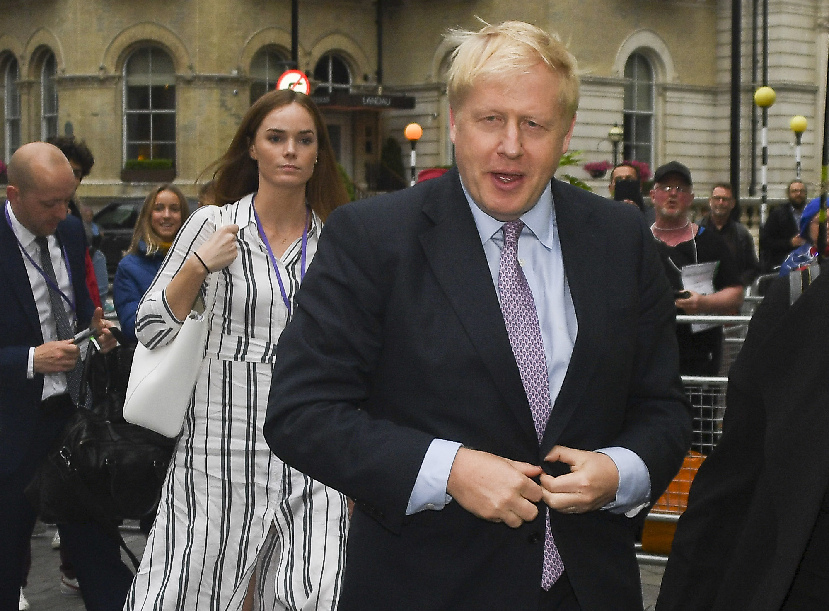 Boris Johnson (1st R) arrives at the BBC to take part in the Conservative Party leadership BBC television debate in London, Britain, on June 18, 2019. (Xinhua/Alberto Pezzali)