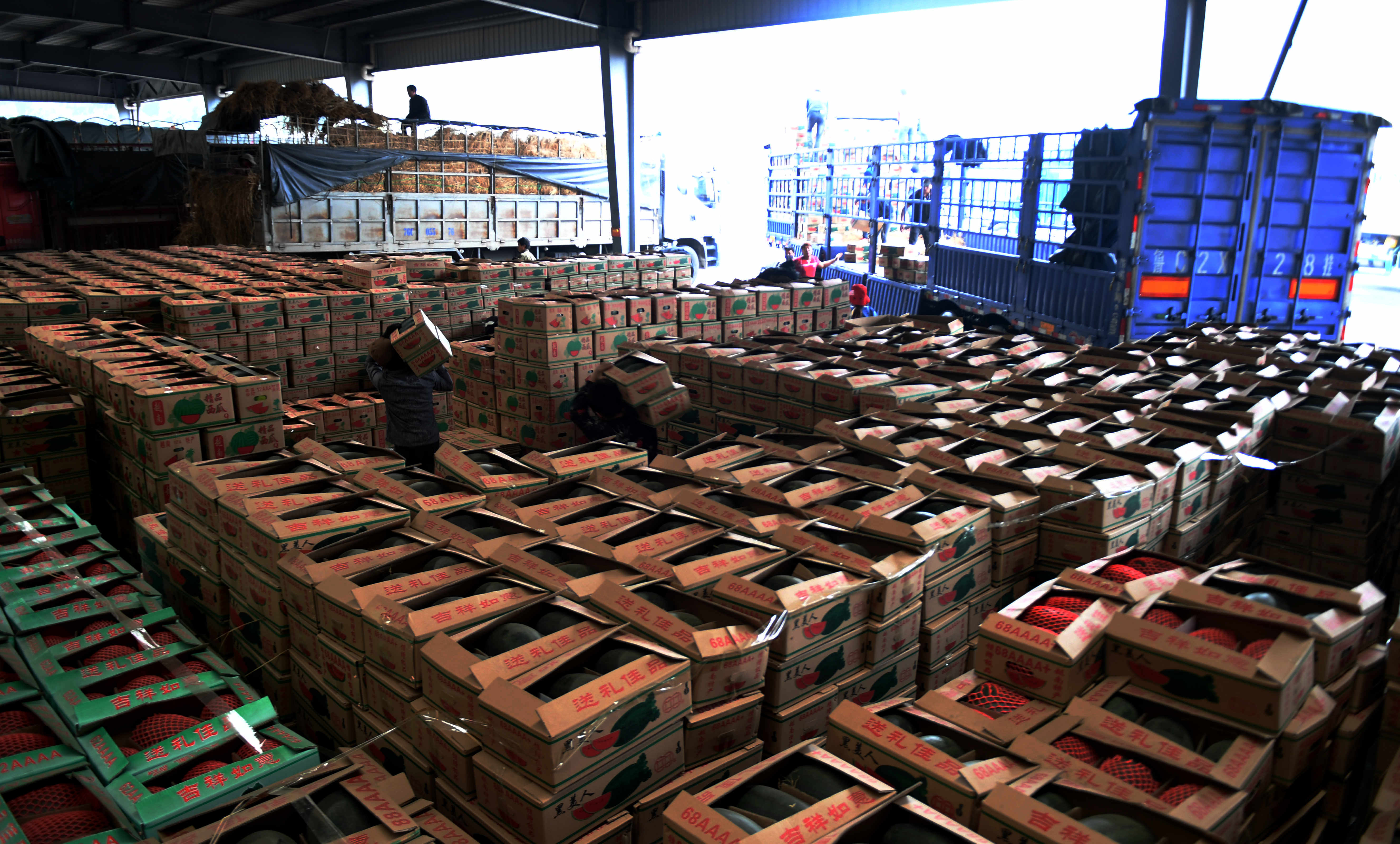 Fruits to be exported to ASEAN countries are distributed at a border supervision center in Pingxiang City of south China's Guangxi Zhuang Autonomous Region, Jan. 16, 2018. (Xinhua/Zhang Ailin)