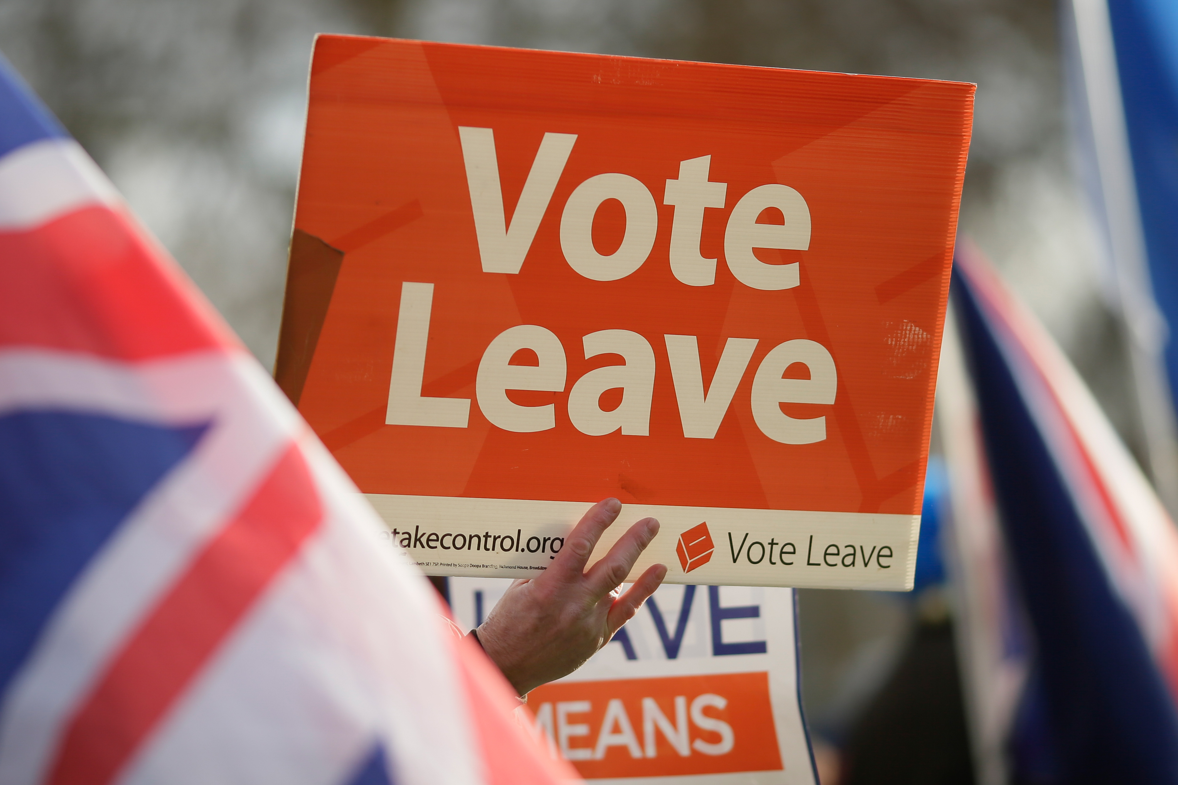 Pro-Brexit demonstrators hold placards outside the Houses of Parliament in London, Britain, on Jan. 9. 2019. (Xinhua/Tim Ireland)