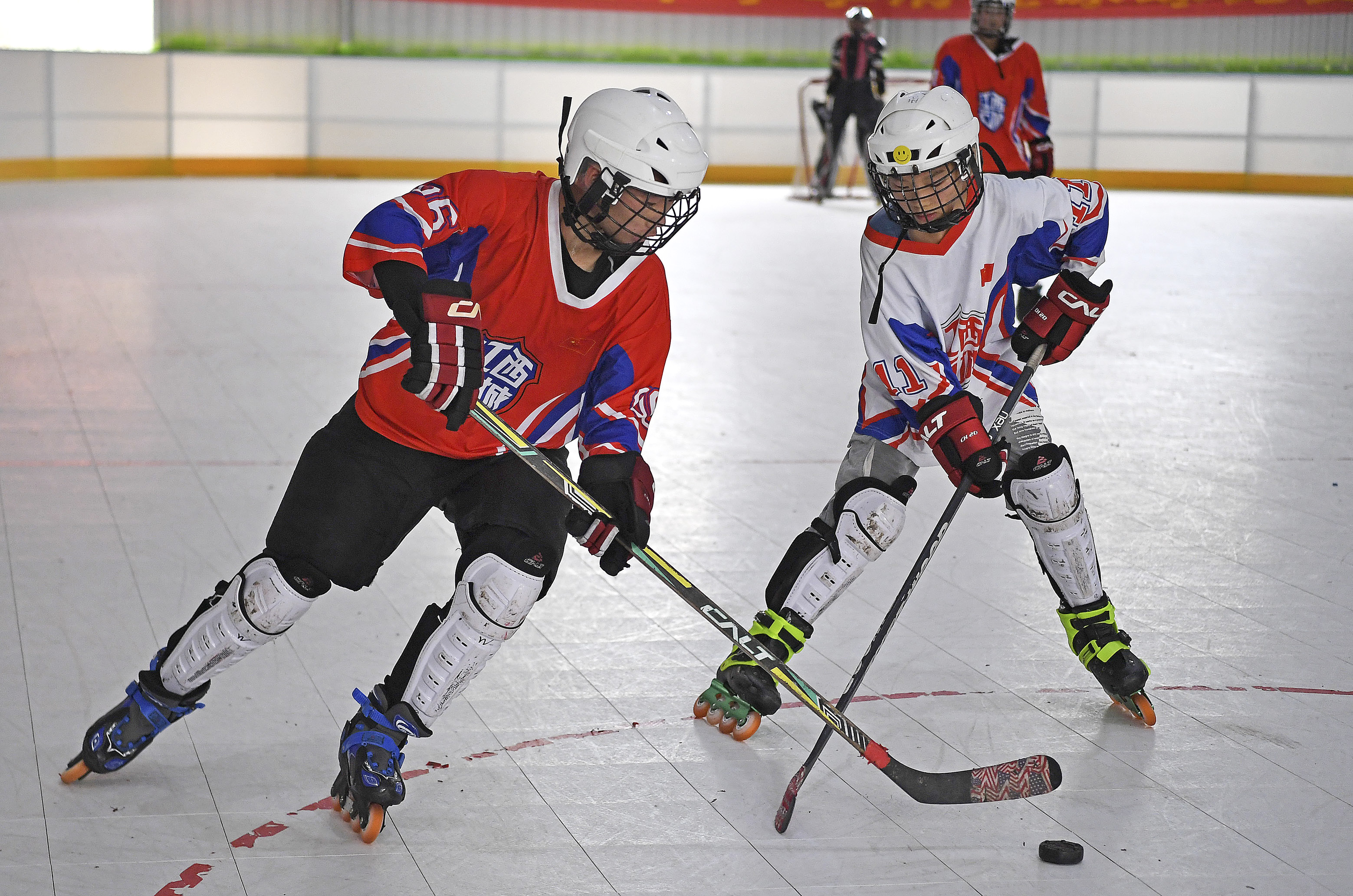 Roller hockey, combining the convenience of roller skates and the unique fun of ice hockey as a confrontational sport, is sweeping Shicheng.