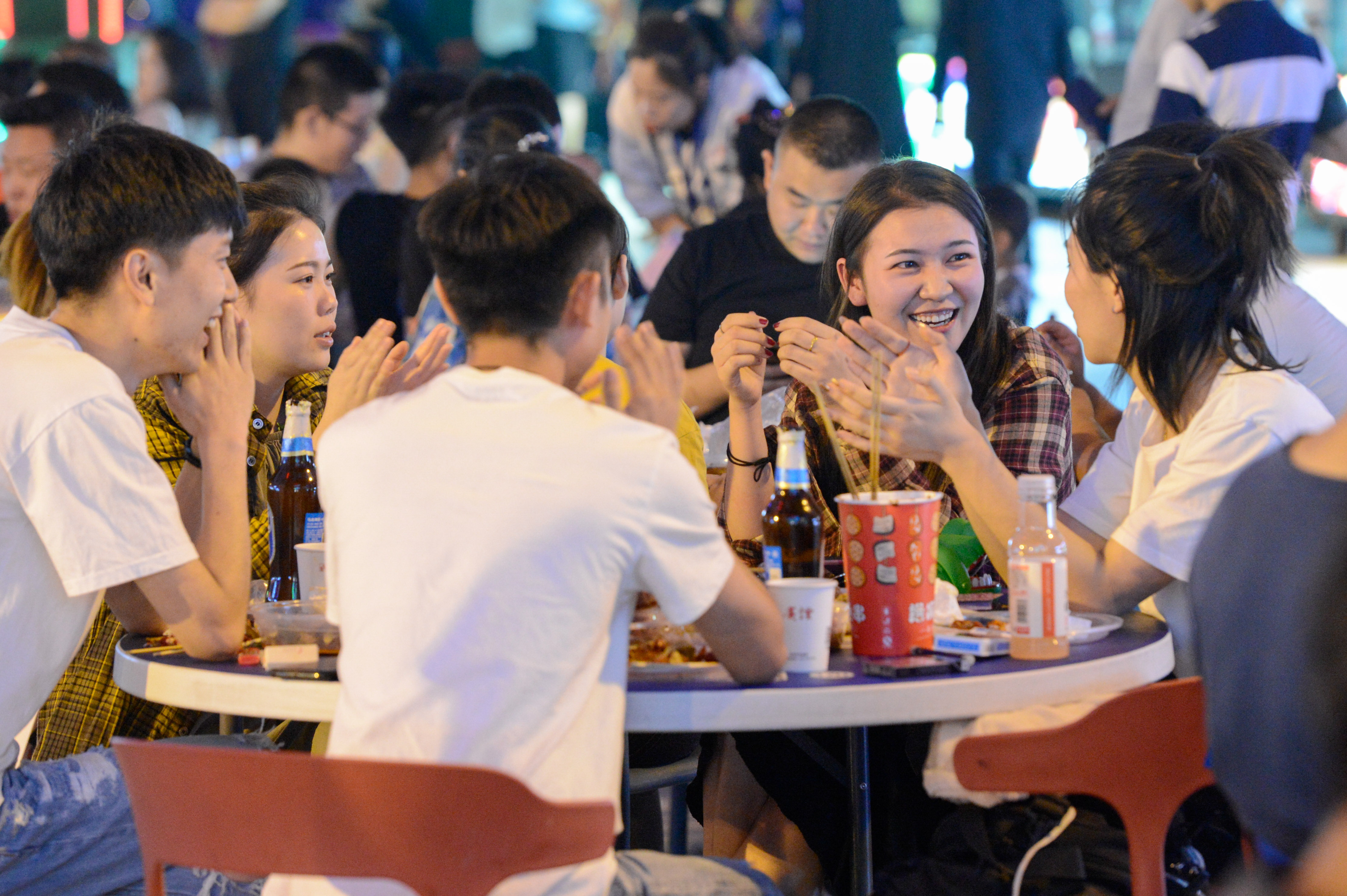 People have fun at a night fair in Urumqi, capital of northwest China's Xinjiang Uygur Autonomous Region, July 5, 2019. (Xinhua/Ding Lei)
