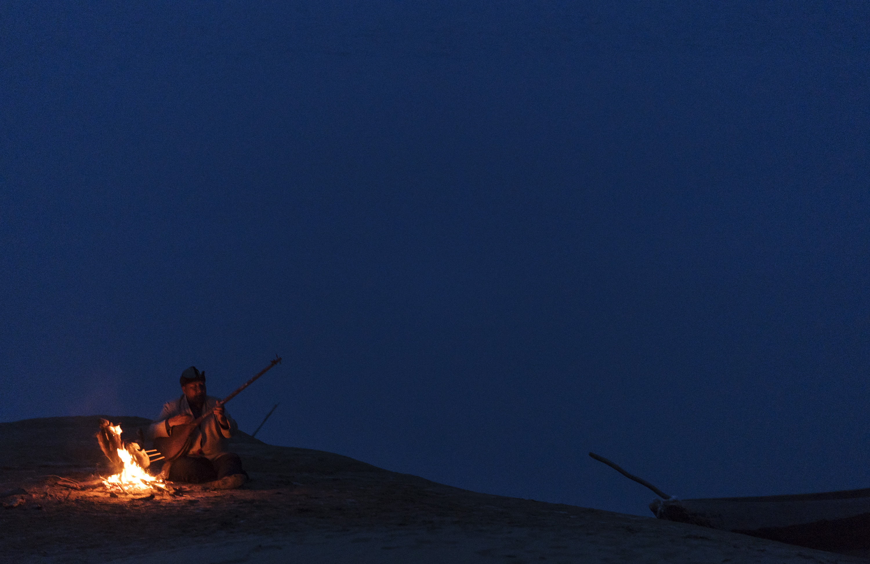 Amudun Abudu, a 61-year old typical Lop Nur villager, works in local tourism industry. With the changes of the times, many Lop Nur people have various options for a living, yet he insists on the tradition of fishing in rivers and lakes. Not only does he make delicious roast fish, Amudun also makes canoe models and pen holders made of populus euphratica trees for tourists during the tourist rush season.