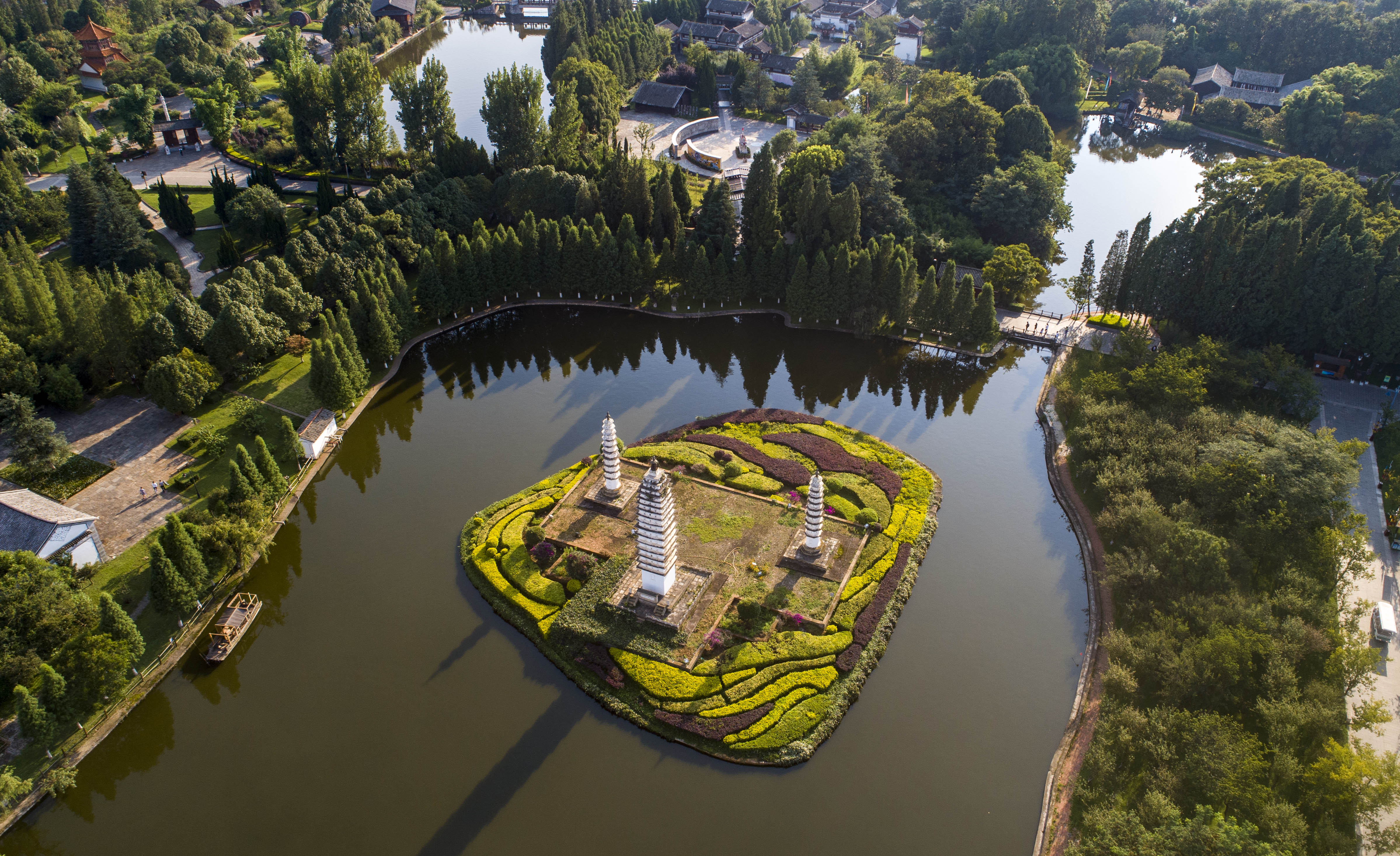 Aerial view of the Yunnan ethnic culture village in Kunming, Aug. 15, 2019. (Xinhua/Hu Chao)