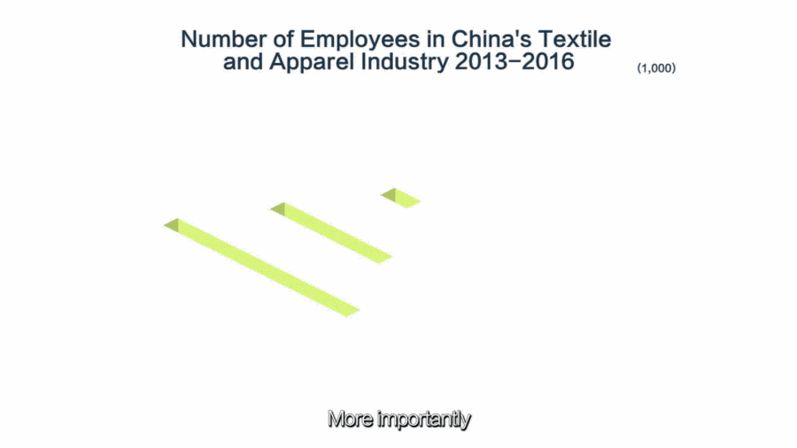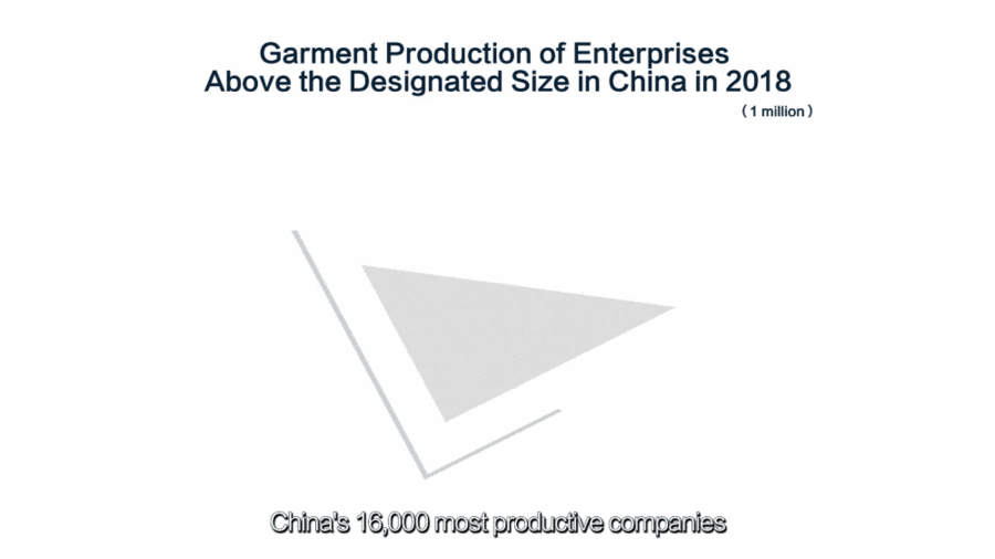 In 30 years, the annual production of chemical fiber in China increased from 1 million tons to 50 million tons. China's 16,000 most productive companies can produce more than 22.2 billion garments a year.