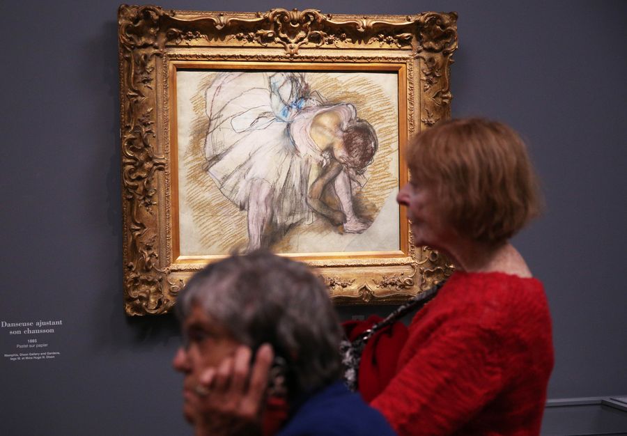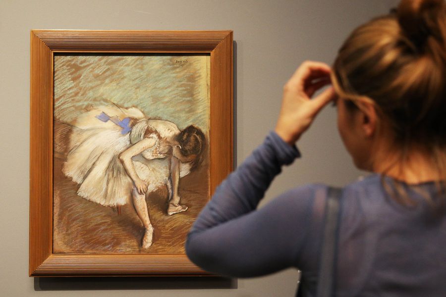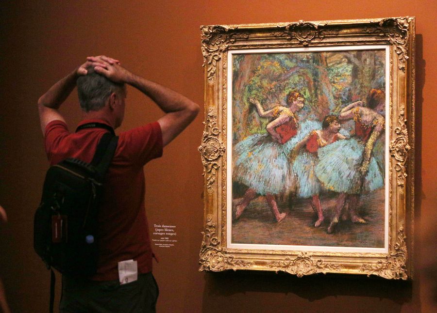 A woman visits the exhibition "Degas at the Opera" at the Orsay Museum in Paris, France, Sept. 24, 2019.(Xinhua/Gao Jing)