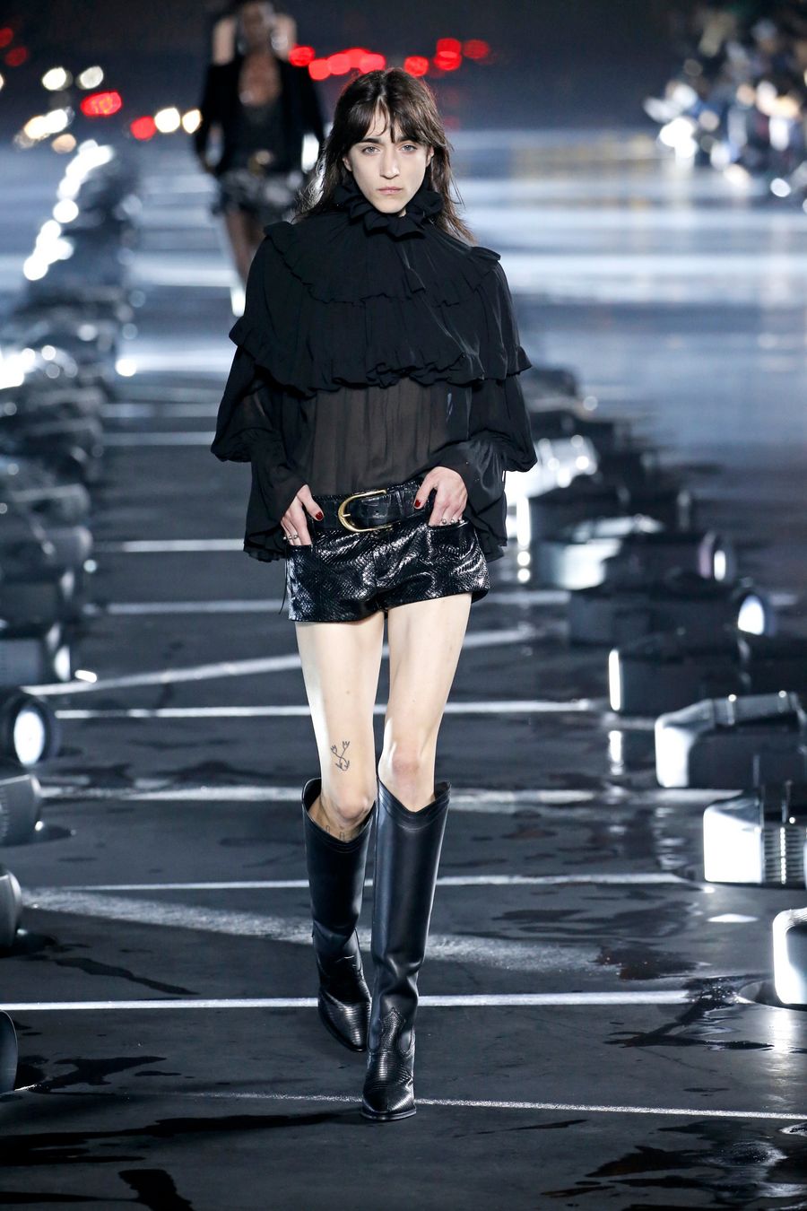 A model presents a creation of Saint Laurent at its Spring/Summer 2020 women's ready-to-wear collection show during Paris Fashion Week in Paris, France, Sept. 24, 2019. (Photo by Piero Biasion/Xinhua)
