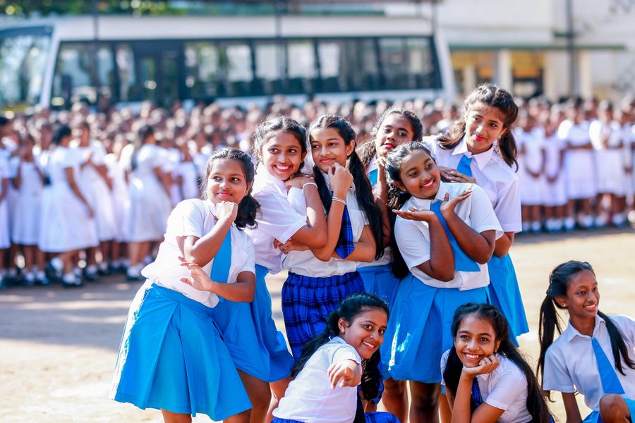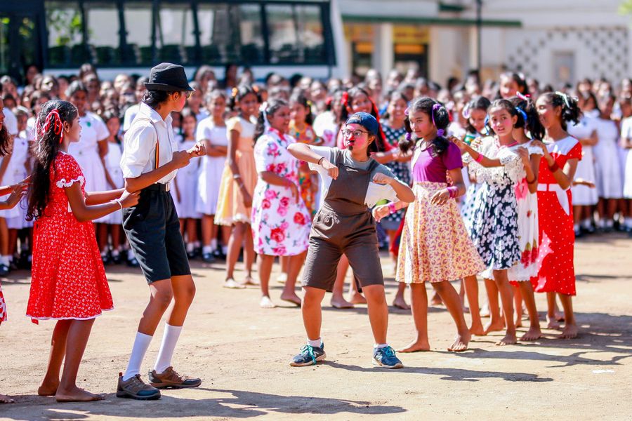 Students perform to celebrate Children's Day at Gothami Balika Vidyalaya in Colombo, Sri Lanka, on October 1, 2019. (Photo by Gayan Sameera/Xinhua)