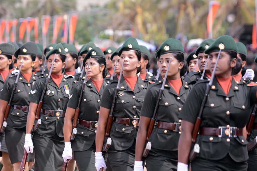 Soldiers attend a ceremony marking the Sri Lanka Army's 70th anniversary in Colombo, Sri Lanka, on Oct. 10, 2019. (Photo by Gayan Sameera/Xinhua)