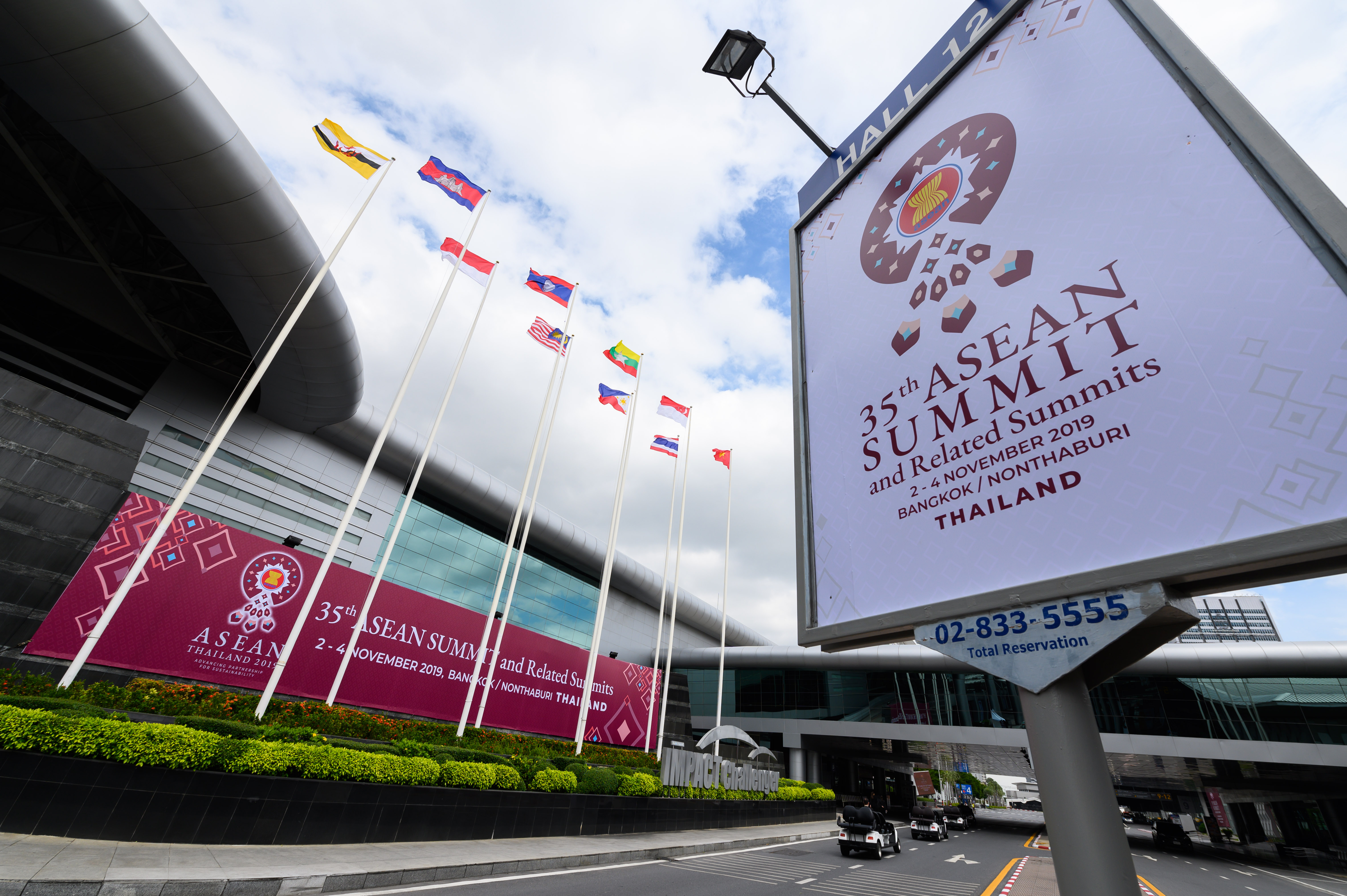 Photo taken on Nov. 1, 2019 shows a view of the meeting venue of the 35th ASEAN summit and related summits in Bangkok, Thailand. (Xinhua/Zhu Wei)