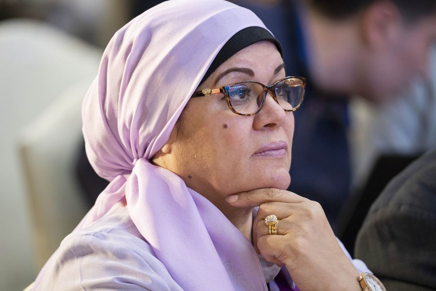 Singer Lamia Ktata performs at the Tunisia pavilion during the second China International Import Expo (CIIE) in Shanghai, east China, Nov. 7, 2019. (Xinhua/Purbu Zhaxi)