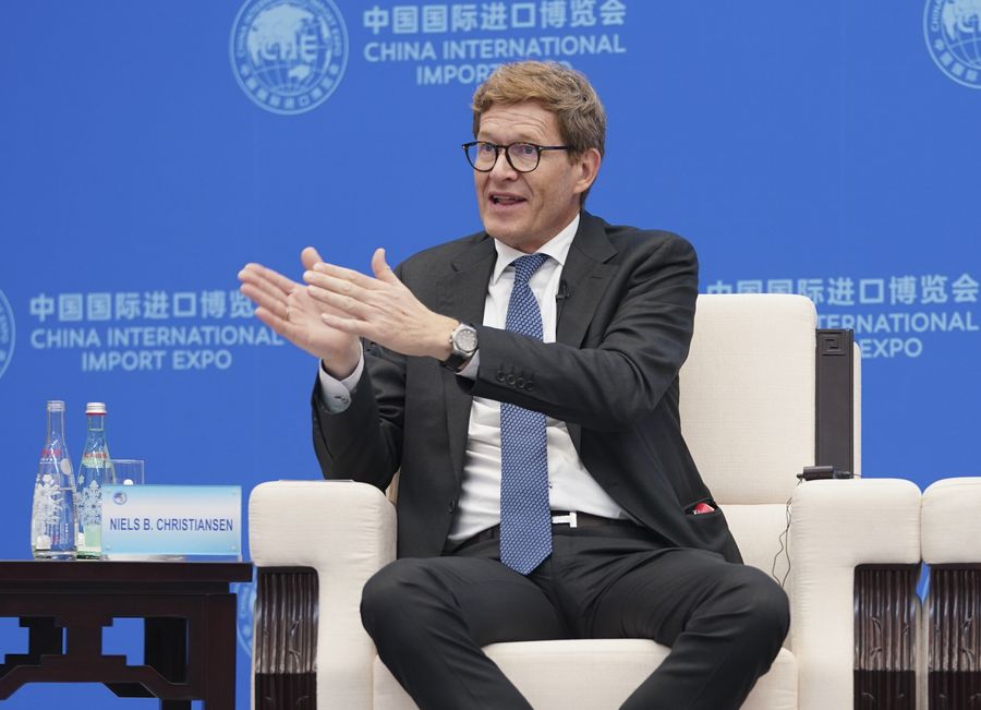 Niels B. Christiansen, chief executive officer of LEGO Group, speaks during the parallel session "Artificial Intelligence and Innovative Development" of the second Hongqiao International Economic Forum in Shanghai, east China, Nov. 5, 2019. (Xinhua/Yin Gang)
