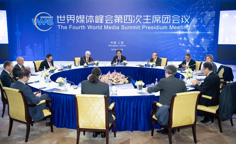 The Fourth World Media Summit Presidium Meeting is held in Shanghai, east China, Nov. 18, 2019. Senior executives of 13 media organizations from 11 countries attended the meeting themed on "New Era, New Media and New Vision". (Xinhua/Li Xiang)