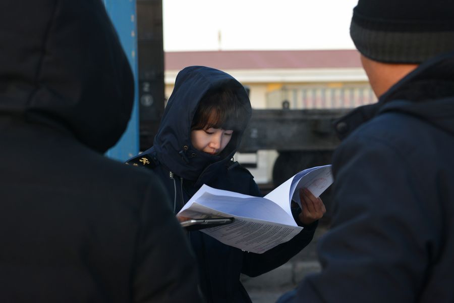 A customs staff worker checks the customs declaration documents at the Manzhouli Customs in Manzhouli, north China's Inner Mongolia Autonomous Region, Jan. 10, 2019. (Xinhua/Zou Yu)