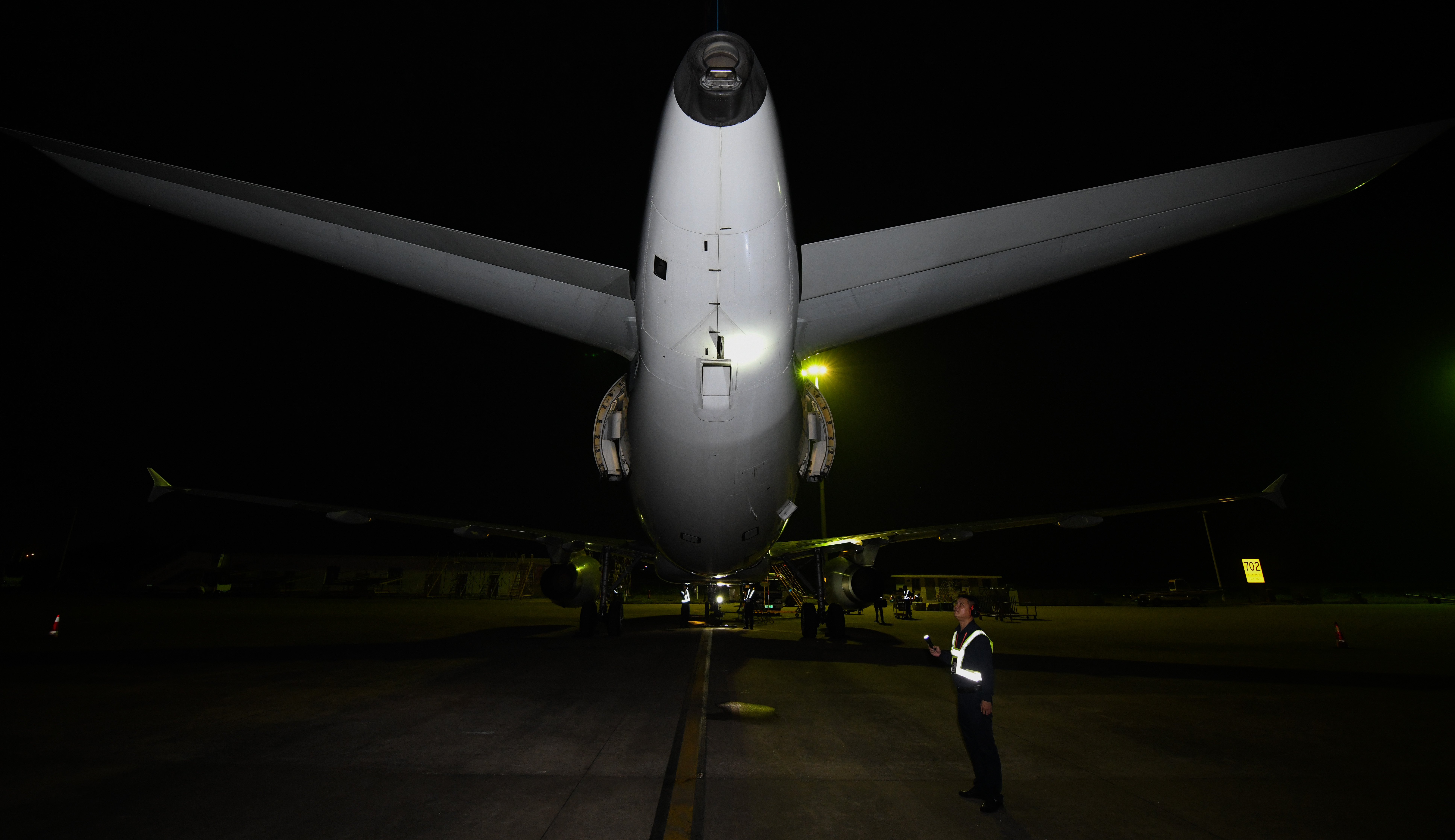 A mechanical engineer of China Southern Airlines checks a plane at the Meilan International Airport in Haikou, south China's Hainan Province, Jan. 9, 2020. Staff members of China Southern Airlines have enhanced maintenance to secure the safety and smooth operation during the Spring Festival travel rush season. (Xinhua/Yang Guanyu)