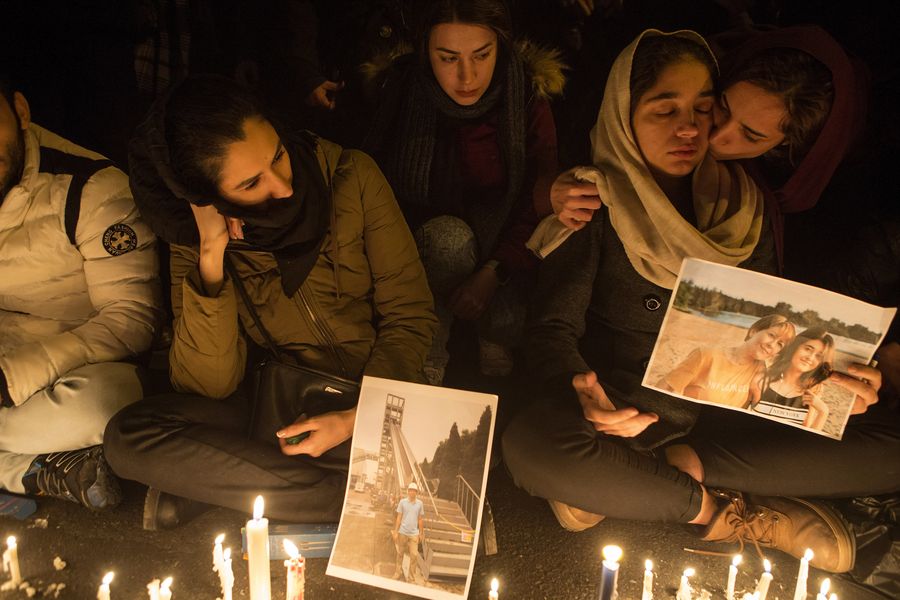 People attend a mourning ceremony for the victims of the Ukrainian plane crash, in Tehran, Iran, Jan. 11, 2020. (Photo by Ahmad Halabisaz/Xinhua)