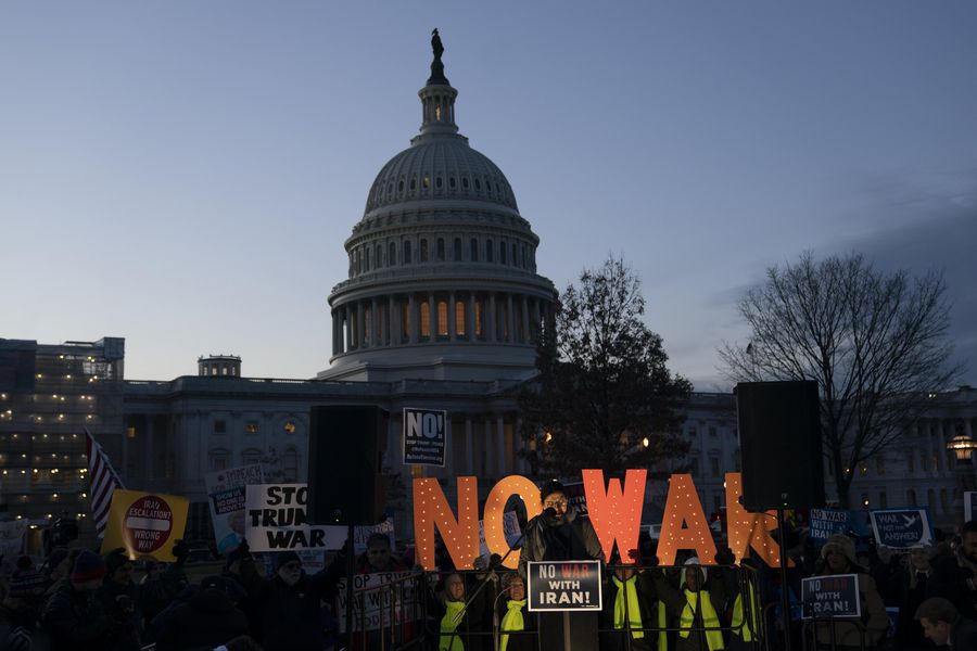A rally against war with Iran is held outside the Capitol Hill in Washington D.C., the United States, Jan. 9, 2020. (Xinhua/Liu Jie)
