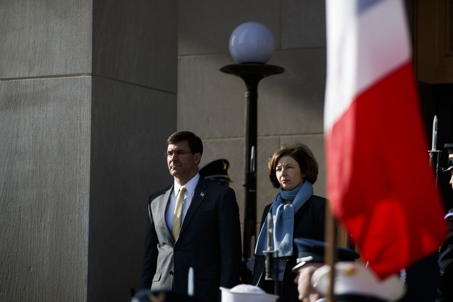 U.S. Secretary of Defense Mark Esper (L) welcomes French Minister of the Armed Forces Florence Parly at the Pentagon in Arlington, Virginia, the United States, on Jan. 27, 2020. (Photo by Ting Shen/Xinhua)