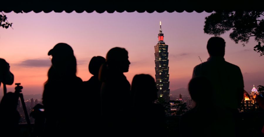 Tourists view the Taipei 101 skyscraper, a landmark in Taipei, southeast China's Taiwan, Jan. 2, 2017. (Xinhua/Zhu Xiang)