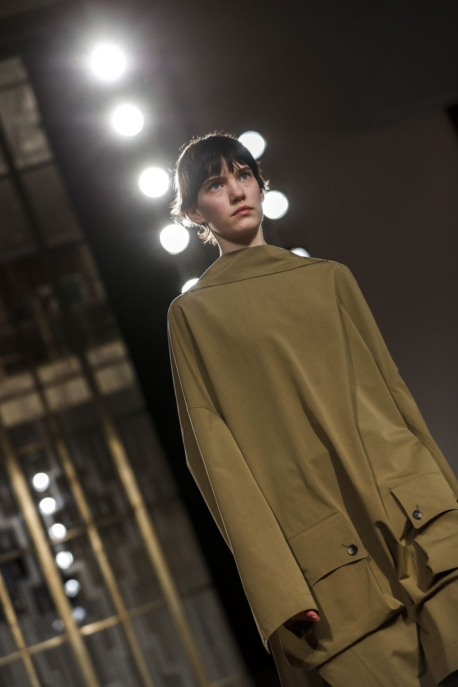 A model walks the runway at Petar Petrov catwalk show during the London Fashion Week at the Royal Institute of British Architects in London, Britain. (Xinhua/Han Yan)