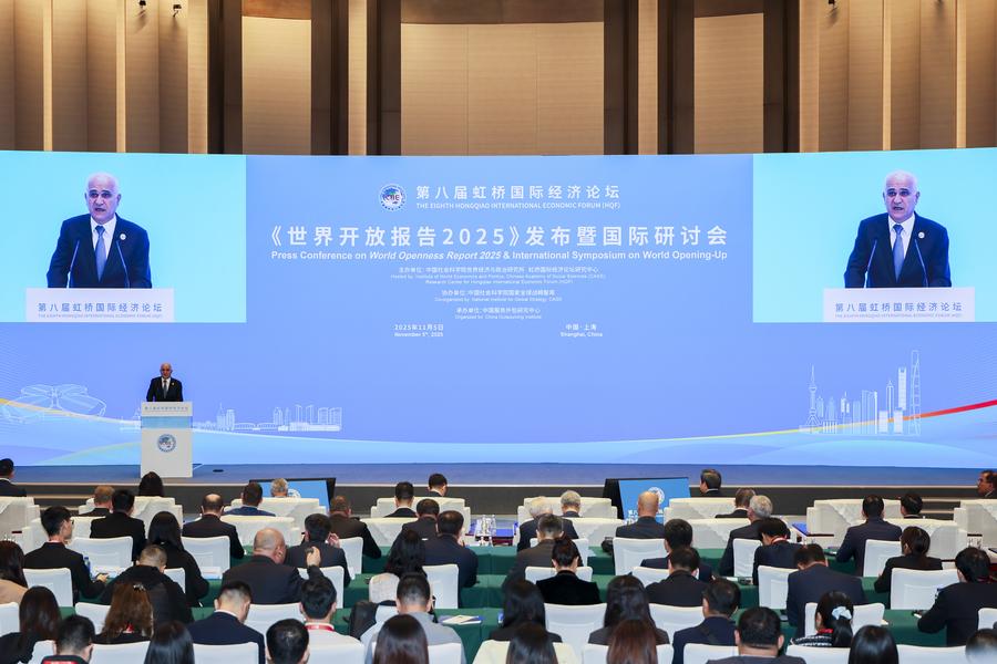 A press conference on World Openness Report 2025 and International Symposium on World Opening-Up is held during the 8th Hongqiao International Economic Forum in Shanghai, east China, Nov. 5, 2025. (Xinhua/Wang Xiang)A press conference on World Openness Report 2025 and International Symposium on World Opening-Up is held during the 8th Hongqiao International Economic Forum in Shanghai, east China, Nov. 5, 2025. (Xinhua/Wang Xiang)A press conference on World Openness Report 2025 and International Symposium on World Opening-Up is held during the 8th Hongqiao International Economic Forum in Shanghai, east China, Nov. 5, 2025. (Xinhua/Wang Xiang)■